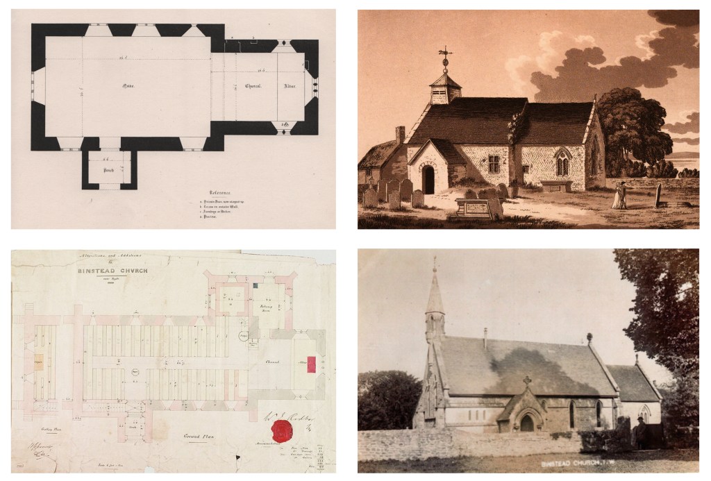 Top Right: Engraving on Holy Cross, Binstead. From Charles Tompkins, A Tour of the Isle of Wight (1796).