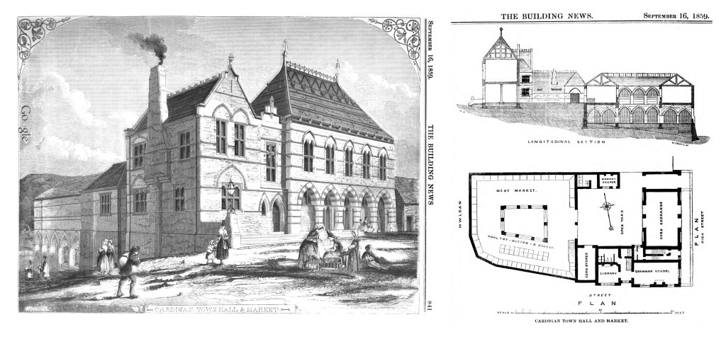Perhaps Withers’ first non-ecclesiastical commission of note would be located in the ancient Welsh city of Cardigan. Between 1856 and 1863, Withers would design at least five projects there, the most important being a complex of municipal buildings which included a guildhall, corn exchange, market, library and grammar school; all designed in 1856 and completed in 1860.