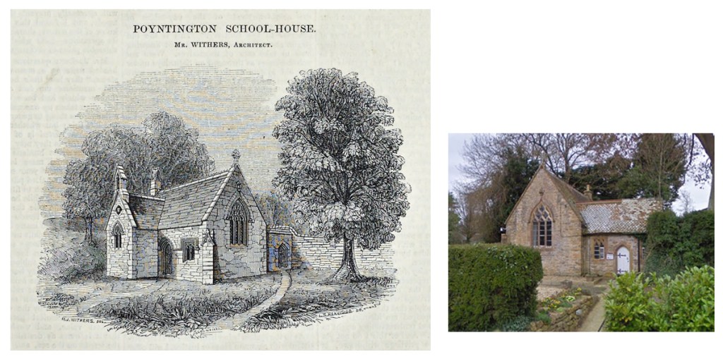In 1846, Withers moved to Sherbourne, Dorset, where his parents and younger brother had moved in 1839. Withers soon gained commissions to restore and rebuild nearby parish churches in the Dorset villages of Hilfield, Poyntington, Lillington and Trent and it was in Poyntington that he was asked to design a schoolhouse; perhaps the first building that was completely of his own design.