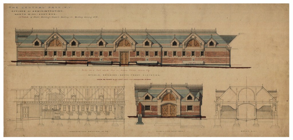 The only project that that is known to have relied on Wisedell’s assistance was the Dairy which had been designed by Calvert Vaux in 1869 and in fact, it was Wisedell’s rendering which was published in Central Park’s Thirteenth Annual Report. Another project from that period which would have also benefited from Wisedell’s experience with gothic detailing would have been with the designs of the administration building which included stables and sheds as well as a “Keeper’s Dwelling.”