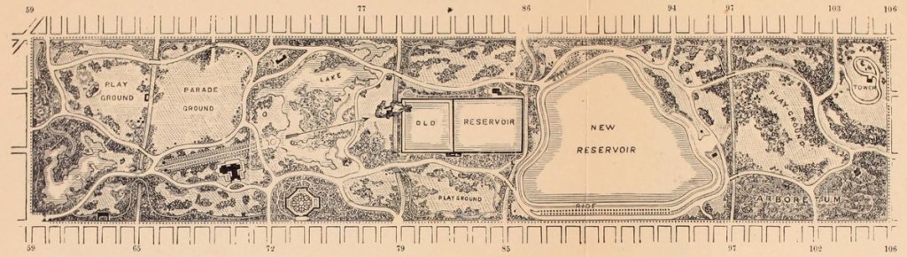 Throughout the 1860’s, Vaux and Mould would design and construct the mall and terrace (the park’s principal architectural feature), the Casino (ladies pavilion) and pergola overlooking the mall and the Belvedere. Other smaller building which had only recently opened were the Boys Cottage, the Girls’ Cottage, the Children’s Cottage, the Music Pavilion and the Mineral Spring House. The exterior retaining around the perimeter of the park was also under construction and the Scholars’ Gate at the corner of Fifth avenue and Fifty-Ninth street had just been redesigned.