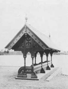 The overall design for the covered seats showed Vaux’ ideas while the detailing and ornamental work reflected the talents of Thomas Wisedell. The structure combined Indo-Islamic details with simple geometric patterns. The roof and eaves had been typical of Vaux’ domestic designs of the 1850’s with its basic, flat design punctured with simple, geometric shapes … More Part 2(e) continued — Sheltered Seats, Delaware Park, Buffalo, N.Y.