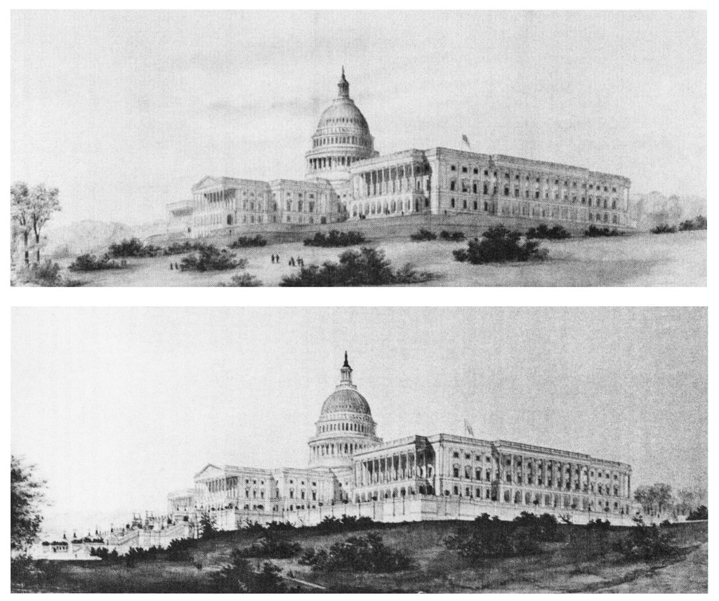 Bottom: View of Capitol with proposed terrace, watercolor by Thomas Wisedell, 1875.