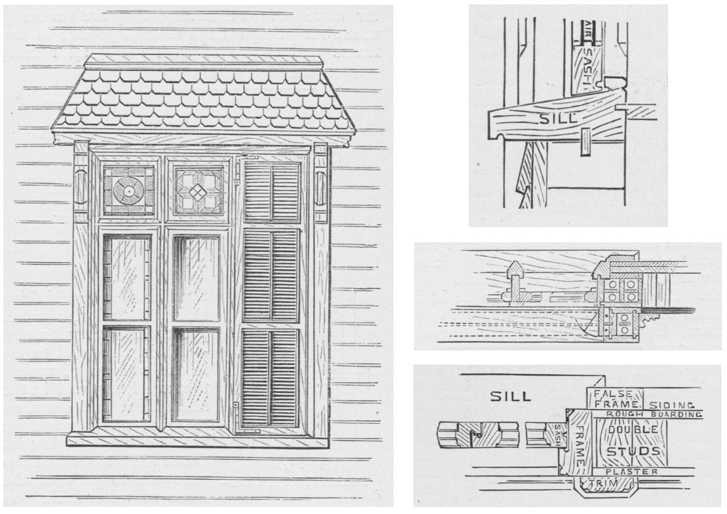 What was perhaps Wisedell’s most important contribution to The Domestic Cyclopaedia was his writings and drawings regarding construction. This was first displayed on the section he wrote regarding windows. Not only did he illustrated various ideas for plain and shuttered windows, but also showed the effects of incorporating stained side lights. Besides those aesthetic features, he also included detailed construction drawings.