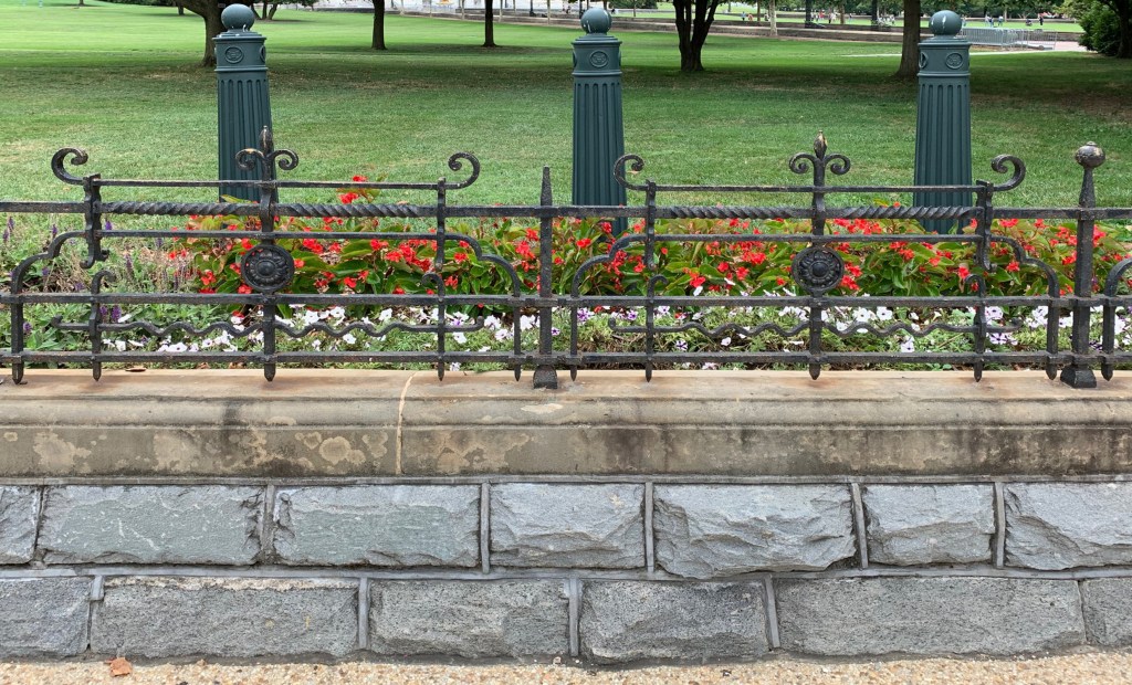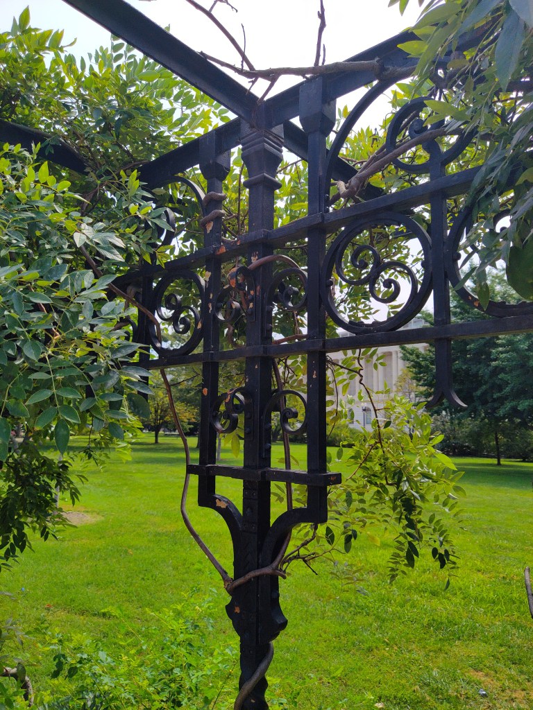The trellises are quite interesting as their design motifs were found on the wrought iron used for both the Eastern and Western grounds of the Capitol. According to the October 1, 1877 report, the north trellis had been completed while the south trellis was still under construction, though probably finished later that year at a cost of $1,258.44.